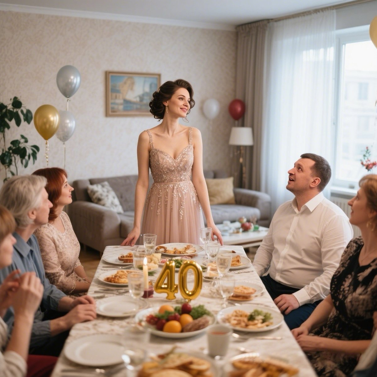 К шести вечера квартира наполнилась людьми. Пришли родители Натальи и Сергея, их коллеги, несколько семейных пар, с которыми они дружили годами. Вернулись дети — Полина привезла маленький торт из модной кондитерской, Кирилл — открытку, явно купленную по дороге домой.
