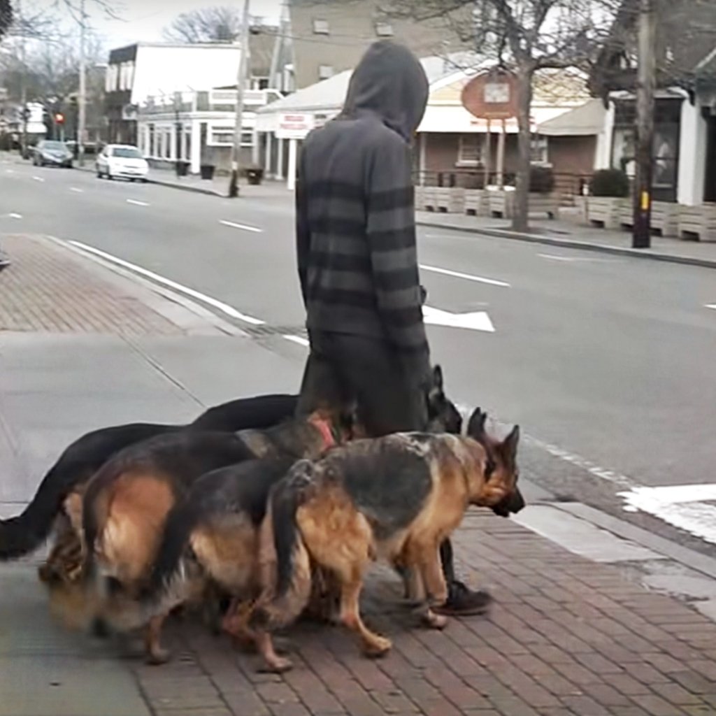 На одной из тихих улочек пригорода случилось нечто, что жители будут обсуждать ещё долго. День начинался, как обычно. Люди шли по своим делам, мамы вели детей в школу, пожилые пары прогуливались в парке. Но внезапно внимание прохожих привлек мужчина, идущий по тротуару с двумя большими «собаками» на поводке.