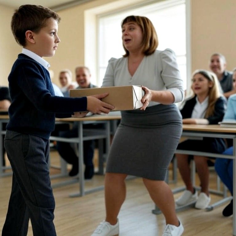Они сложили их на ее столе, а сами столпились вокруг, чтобы посмотреть, как она будет их разворачивать. Среди подарков был также подарок и от Артема Соловея. Учительница была удивлена, что он принес ей подарок…